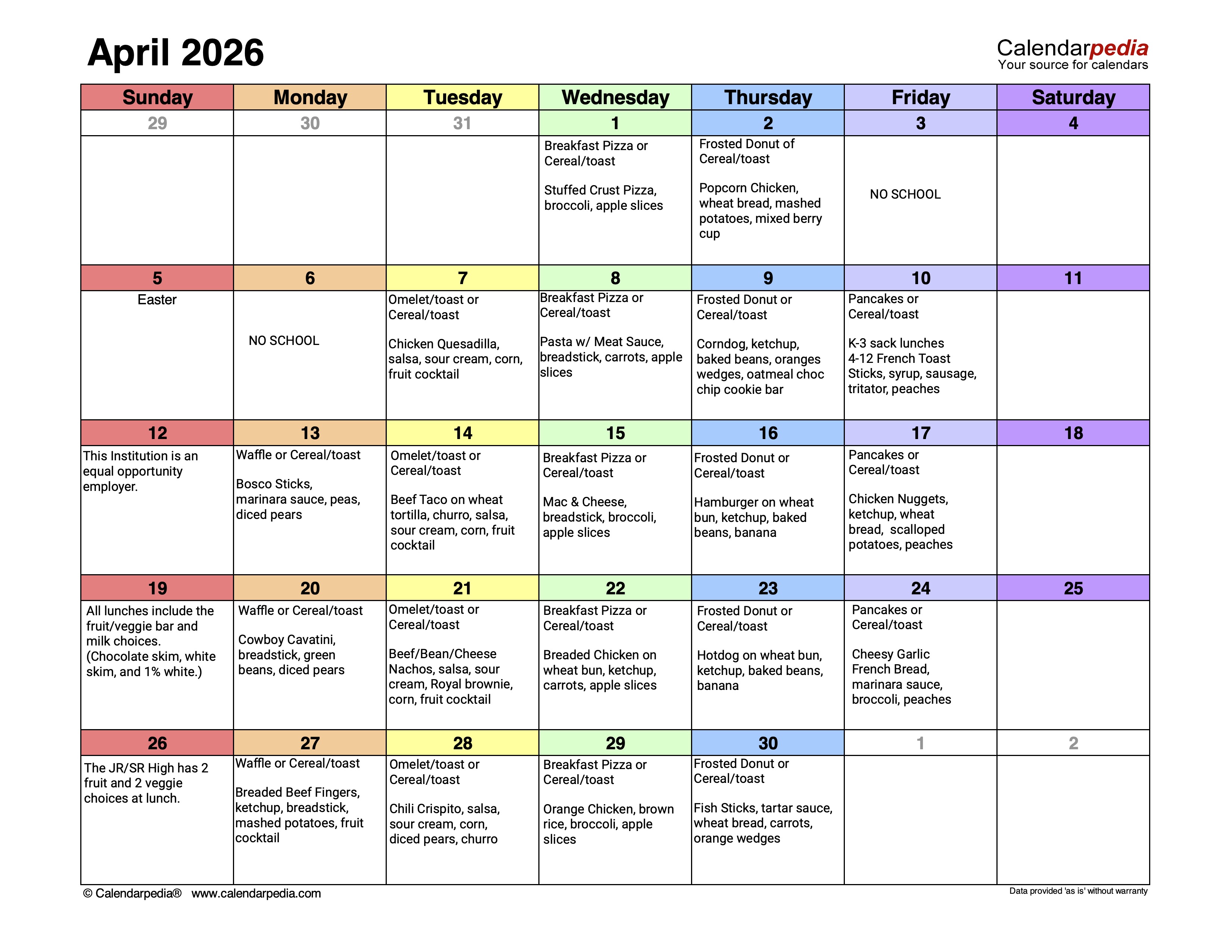 February 2026 Breakfast & Lunch menu- Downloadable form